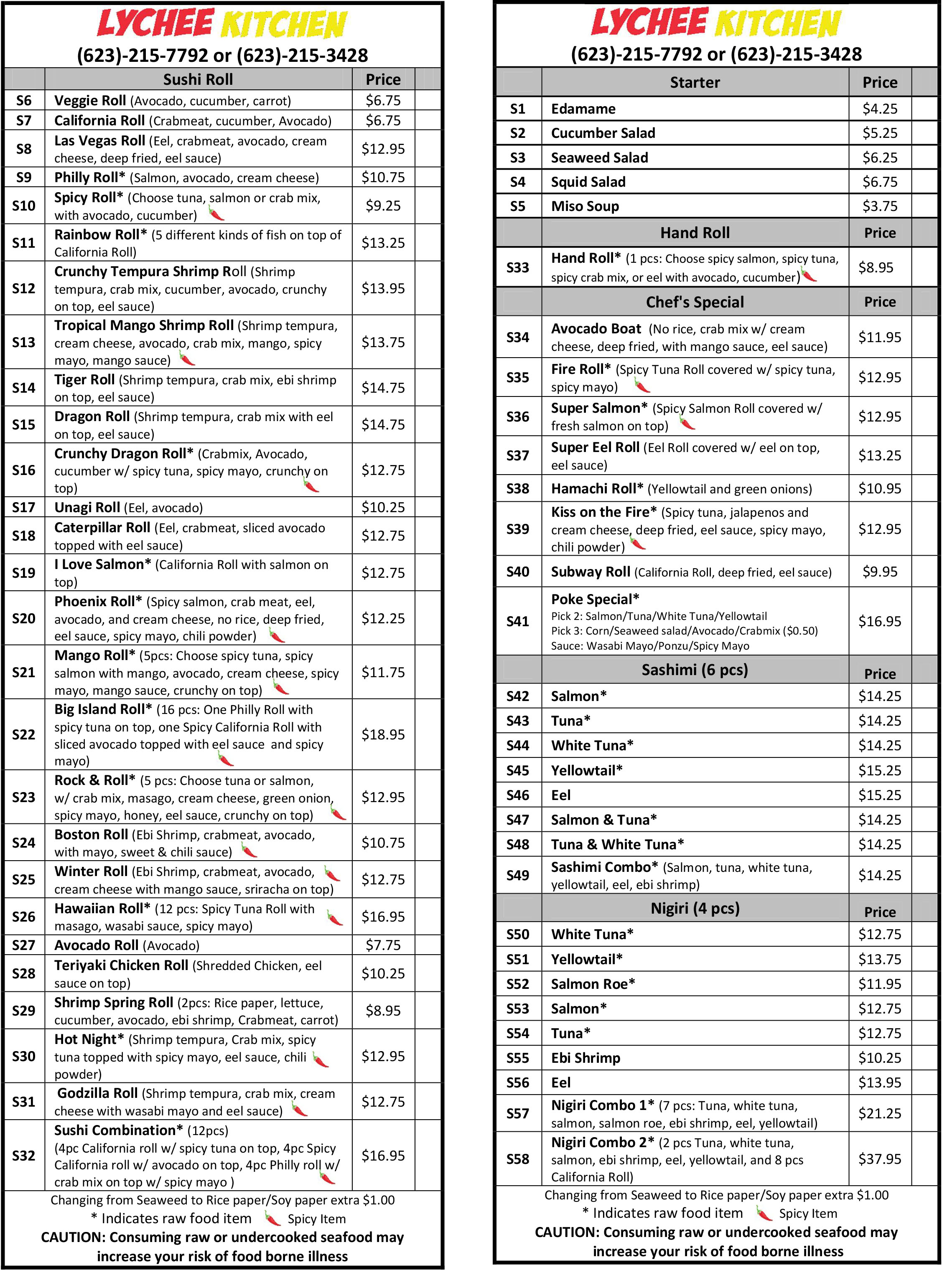 Sushi Menu